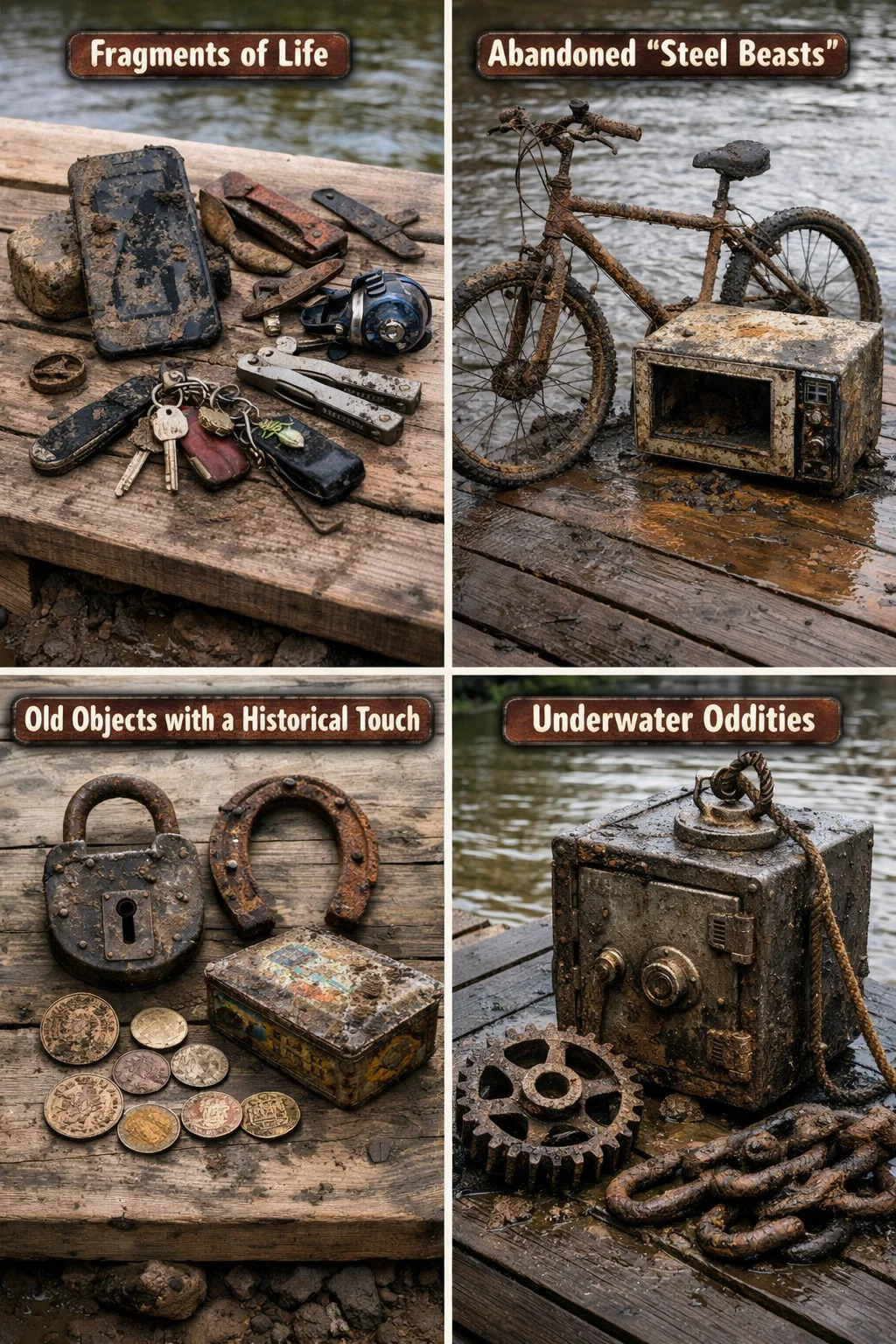 Deze activiteit lijkt op een 'metaalspeurtocht' onder water, en hier zijn enkele interessante vondsten die mensen vaak tegenkomen:
